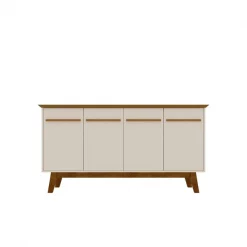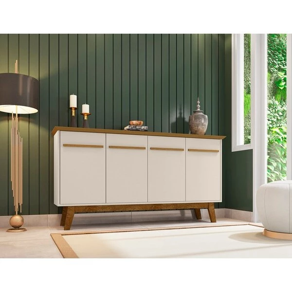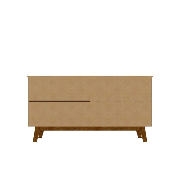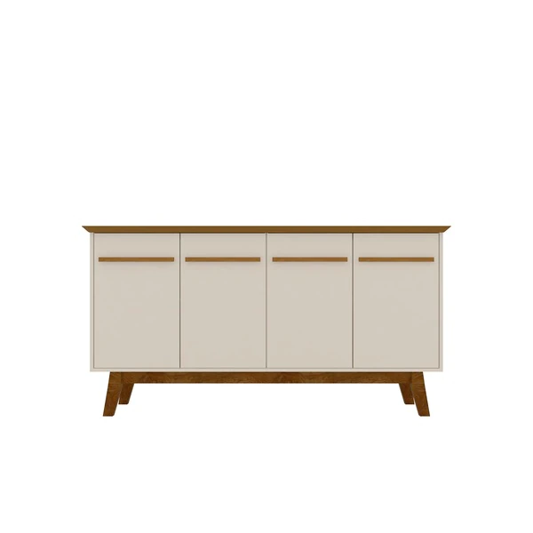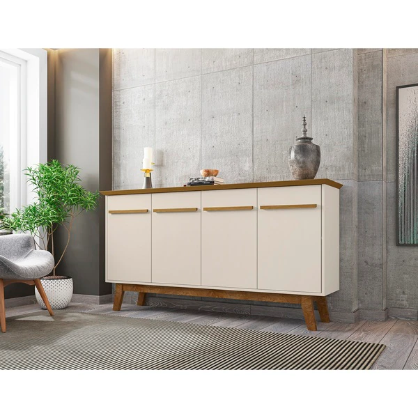 Update your dining area or living space and entertain in style, with the Yonkers sideboard that acts as a buffet and storage center, in the perfect blend of mid-century design and modern functionality. Cabinet style doors with a soft close feature offer ample space for tucking away dishes, tablecloths, and dinnerware to host ultimate dinner parties. Add candlesticks, framed photos, or a mail tray on its smooth base to personalize the piece and make it your own. Beautiful craftsmanship and intricate detailing shines, with durable splayed wood legs, beveled top, and sleek handles to finish.