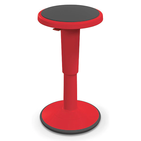 Wobble action and swiveling seat encourage micro-movement to help bleed off excess energy. Helps promote improved upright posture and increased focus while working. Available in two sizes and eight colors. Short stool is height adjustable from 14′′ to 18′′, and tall stool adjusts from 17′′ to 24′′ to accommodate a variety of users. Comfortable and ergonomic stool made with durable and lightweight plastic.