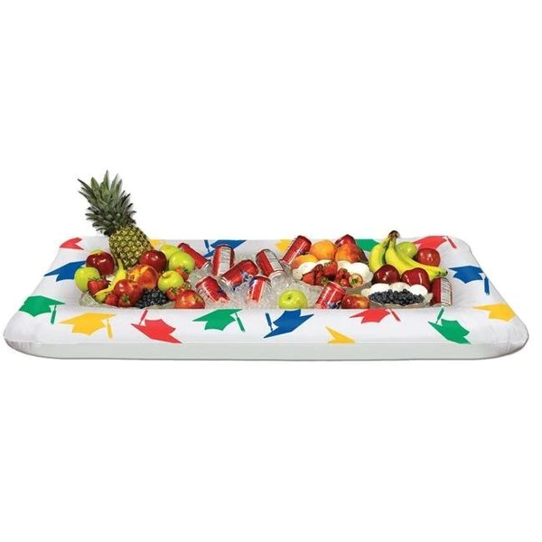 Morris is Costumer to the stars. We are well known for their unique life like mascot and animal Costumes. the Morris gorilla suits were used literally by hundreds of magicians. TV shows and in many feature films. We provide attractive Costumes which are very comfortable with high standards. We can take everyone to the imagination world where they travel with their stars. A great item for your favorite graduate's party after their ceremony. Put this inflatable cooler on the buffet table and fill with ice and whatever food and beverages need to be kept cool. White rectangle shape with colorful graduation cap design. PVC. 28inW x 4ft 5+;inL. Needs to be inflated. FeaturesInflatable Grad Buffet Cooler