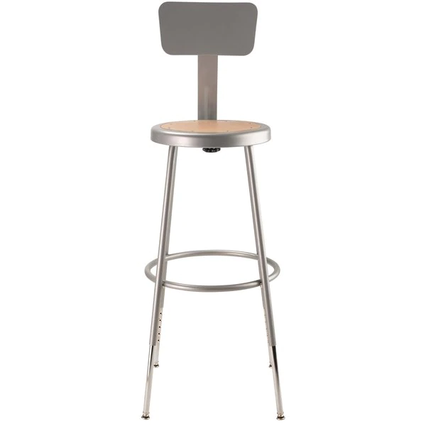 National Public Seating Round Stool with Backrest, Height 25" to 30"Gray