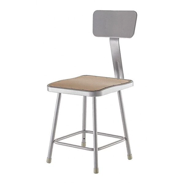 National Public Seating Square Stool with Backrest, Height 18"Gray