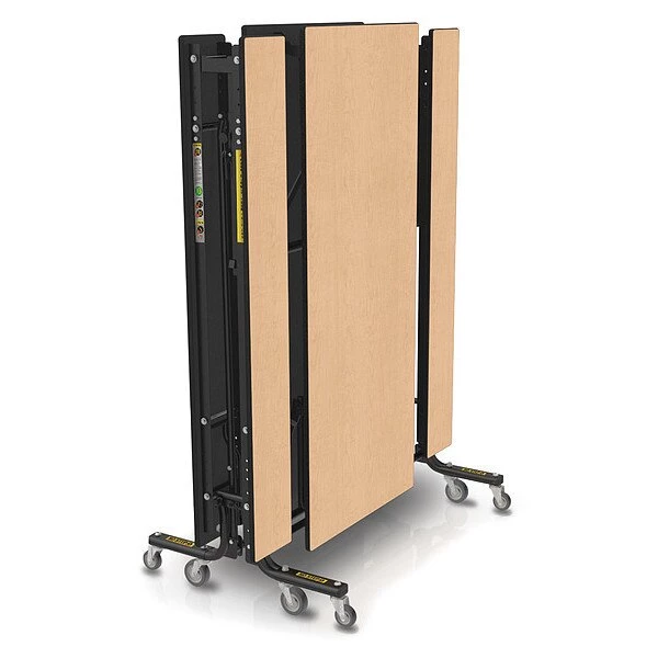 Folding Bench Table, Seats 12, Shape Rectangle, Width 145 in, Depth 55 in, Height 29 in, Tabletop Color Family Brown, Tabletop Color Fusion Maple, Table Material Industrial Grade Laminated Particleboard, Assembled/Unassembled Assembled, Seat Height 17 in, Surface Material High Pressure Laminate, Frame Material Steel, Caster Type (4) Swivel, Chair Color Fusion Maple, Edge Color Black, Edge Type EdgeGuard, Frame Color Black, Top Thickness 13/16 in