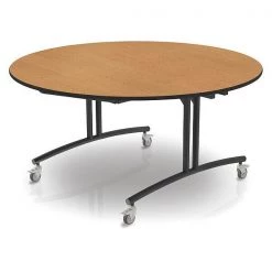 Flip Top Table, Seats 8, Shape Round, Diameter 60 in, Width 60 in, Depth 30 in, Height 30 in, Tabletop Color Family Brown, Tabletop Color Golden Oak, Table Material Industrial Grade Laminated Particleboard, Assembled/Unassembled Assembled, Surface Material High Pressure Laminate, Frame Material Steel, Caster Type (4) 3 in Double Locking, Edge Color Black, Edge Type EdgeGuard, PVC Edge, SmartEdge, Frame Color Black, Top Thickness 3/4 in