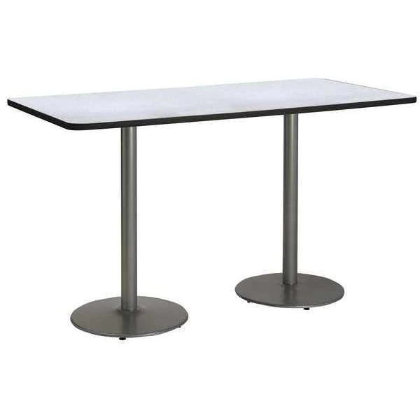 Rectangle KFI 36" x 72" Pedestal Table with Grey Nebula Top, Round Silver Base. Bistro Height, 72 W