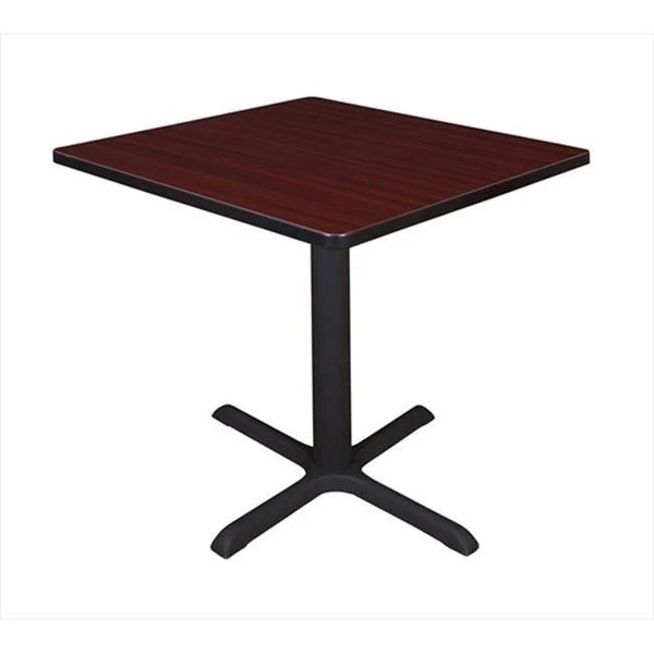 The 30 in. Square Table Top is constructed of thermal fused melamine that protects against stains. burns. bumps and bruises. A black PVC edge adds extra protection. The Cain X-Base is constructed of a black tubular steel post and solid steel legs with a textured powder coat finish. The table feet feature hidden adjustable glides that make this table ideal for training rooms. lunch rooms. restaurants. cafes. or small conference rooms.FeaturesModel – Square Cain Lunchroom TableColor – MahoganySize – 30 in.