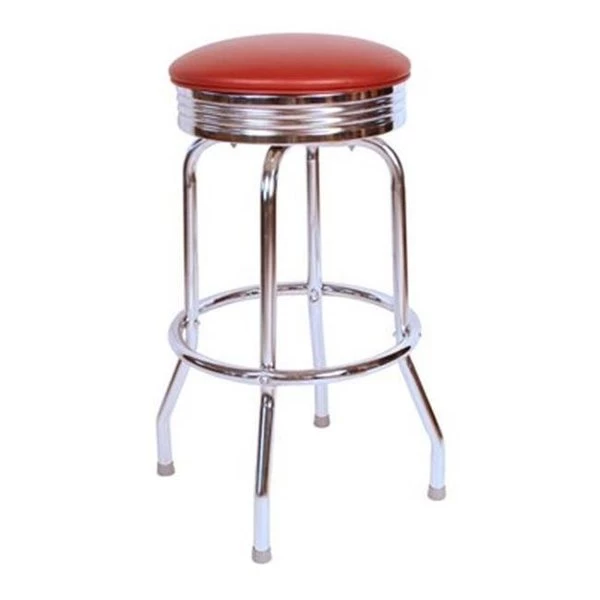 Upholstered round 360 degree swivel seat with gleaming chrome pan base. Sturdy. bolted double-ring construction. Commercial grade and made in the USA. Perfect addition to any bar. restaurant. service counter. cafe or home. 18" gauge steel frame with 1" outer tube thickness in chrome finish. Gray nylon floor glides. Available in 24" and 30" seat height Richardson Seating's Floridian collection offers 6 vinyl fabric finishes and ships within 3-5 business days as quick ship items. The 50's retro look bar stool collection is back with added comfort and stylish design. The Floridian collection are commercial bar stools made in the USA. and equally ideal for residential use.Materials: Steel. metal. vinyl. foam. fiberboard. woodDimensions: Length: 16.75"Width: 16.75"Height: 30"Seat Dimensions: 30"Style: Retro