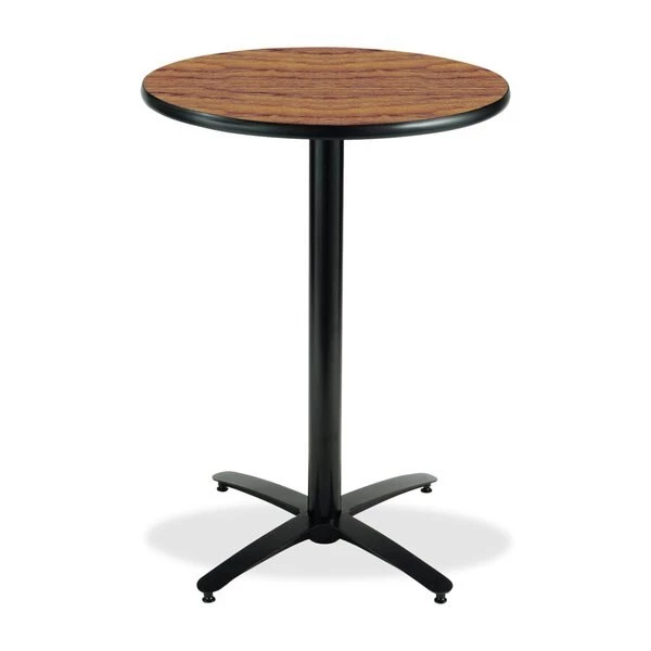 The T36RD is a 36" round bistro height pedestal table. It has a 1.25" thick high pressure laminate top that's durable and easy to clean. The top has an attractive black T-Mold edge that won't crack or peel. The solid cast iron arched X-base has leveling glides to prevent the table from wobbling on uneven floors. The steel column is made of 16 gauge steel. The table stands 42" tall. The top and base are easy to assemble. Made in the USA and GSA approved. Made for Commercial Use.