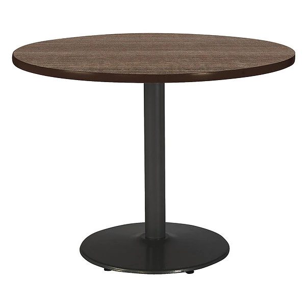 Round KFI Mode 48" Round Breakroom Table with Studio Teak Top, Round Black Base, Counter Height