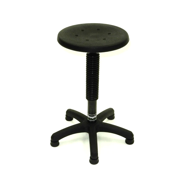 Office stool with polyurethane seat is resists tears, punctures and moisture absorption. Easy to use Single lever pneumatic seat height control mechanism has a seat height range from 16" – 24". Easy to use Single lever pneumatic seat height control mechanism . Five star sturdy nylon base includes non marking glides. <ul><li>ShopSol all purpose office stool is ideal to be used in numerous workplace applications including office, workshops and assembly. Polyurethane seat is resists tears, punctures and moisture absorption. Easy to use Single lever pneumatic seat height control mechanism has a seat height range from 16" – 24". Five star sturdy nylon base includes non marking glides.</li><li>Polyurethane Seats for Durability that resists tears, punctures and moisture absorption – Height adjustment from 16" to 24" – Five leg, 19" diameter nylon base – Dust cover for pneumatic lift -Molded 14" diameter seat, padded for comfort – Meets or exceed ANSI/BIFMA standards</li></ul>