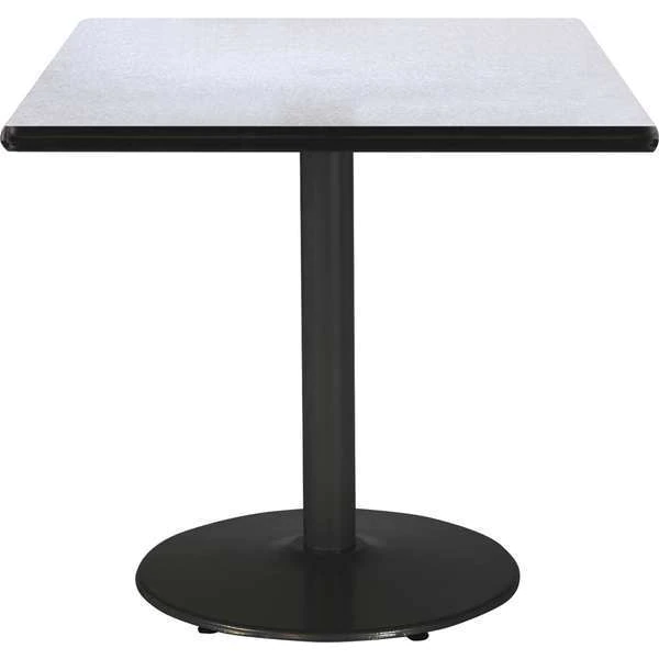 Square KFI 30" Square Breakroom Table with Grey Nebula Top, Round Black Base, 30 W, 30 L, 29 H