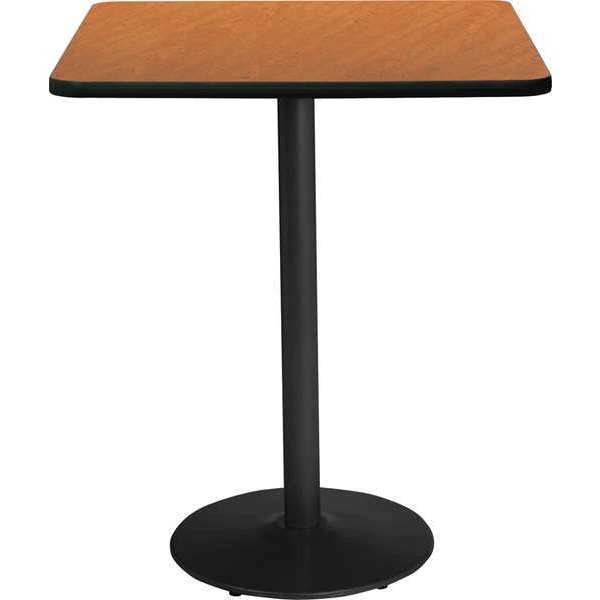 Square KFI 30" Square Breakroom Table with Medium Oak Top, Round Black Base, Bistro Height, 30 W