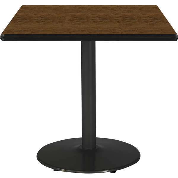 Square KFI 30" Square Breakroom Table with Walnut Top, Round Black Base, 30 W, 30 L, 29 H, Walnut