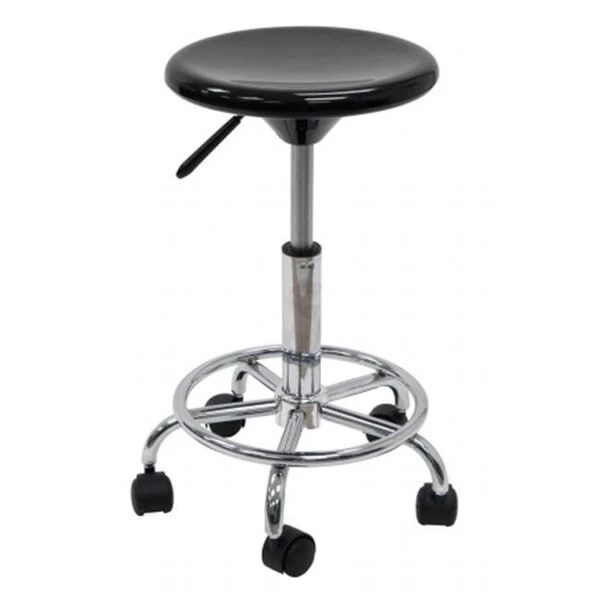 Overall Dimensions: 15.25"W x 15.25"D x 18.5" – 23.5"H Seat Diameter: 12.75" Adjustable Seat Height from 18.5" – 23.5" High Five Star Chrome Base with 2" Covered Casters Pneumatic Gas Lift Chrome Foot Ring