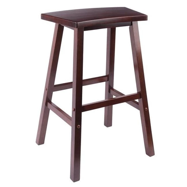 The one of a kind fan shape of the Katashi 24" Stool turns an everyday counter stool into an eye catching design element for your kitchen. den or dining area. With the outer curve of the seat measuring 19.6" wide. the stool offers greater than average seating space. while the inner contour allows for a bit more room for ones legs. Comfortable and stylish. the Katashi Counter Stool has a compact footprint that fits neatly and easily under a counter or desk when not in use. FeaturesFinished in a warm Walnut. the stool is made of Solid Wood for handsome durabilityAssembly requiredSpecificationsFinish: WalnutMaterial: Solid WoodOverall Dimension: 28.6" H x 19.6" W x 15.7" DStatic Weight Limit: 220 lbsSeat outer curve Dimensions: 19.6" W x 11.8" DSeat inner curve Dimension: 15.7" W x 11.8" DHeight From Top of Seat to Highest Crossbar: 15.6" HHeight From Top of Seat to Lowest Crossbar: 18.5" HFootprint: 17.8" W x 15.7" DWeight: 16 lbs